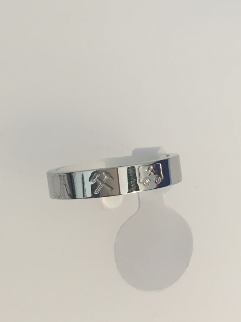 Produktinformationen "Ring Edelstahl mit Förderturm, Schlägel und Eisen und Lore"