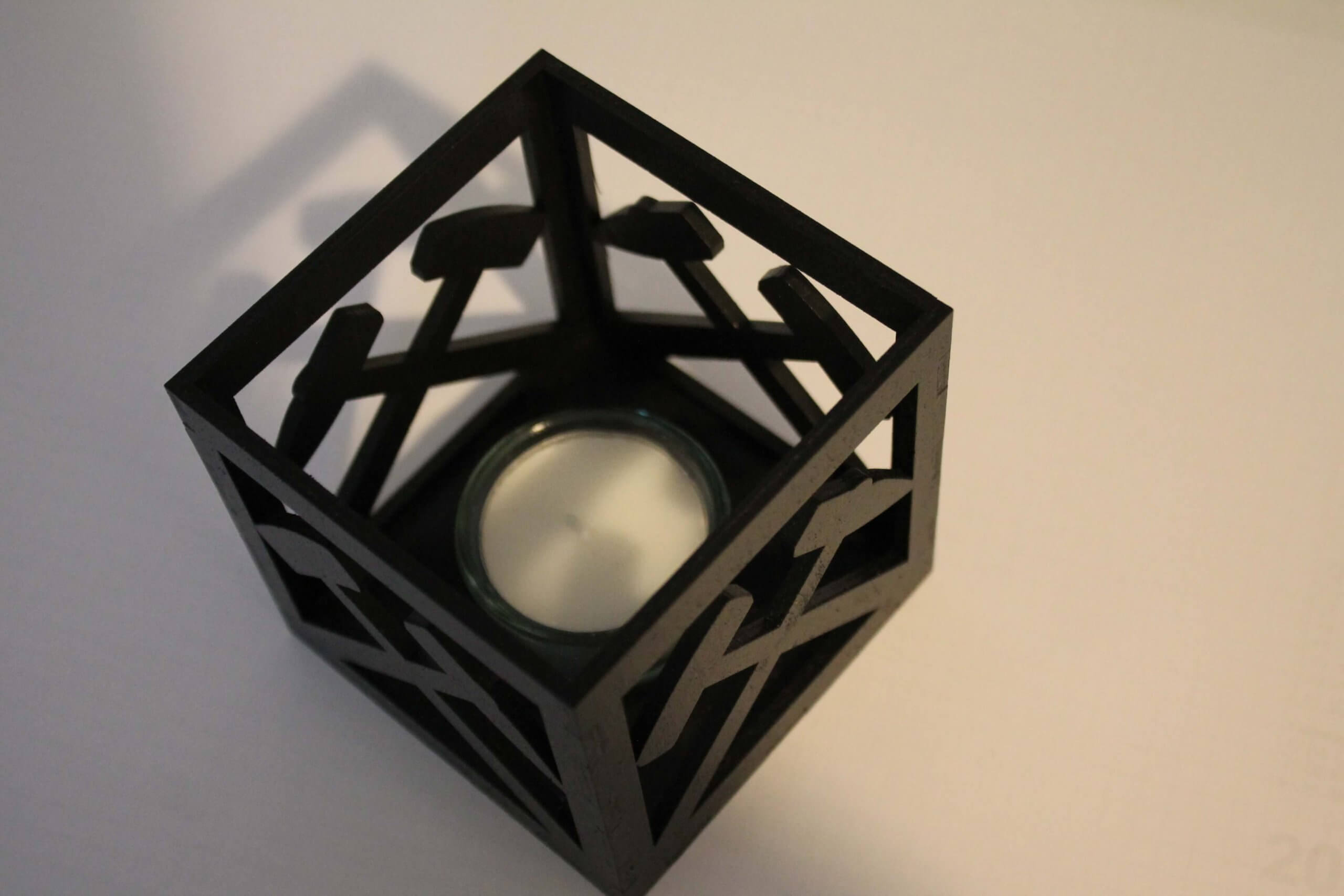 Matt schwarz, selbst entworfen und in Deutschland gefertigt. Dieses Windlicht gibt es auch mit einem Förderurm.